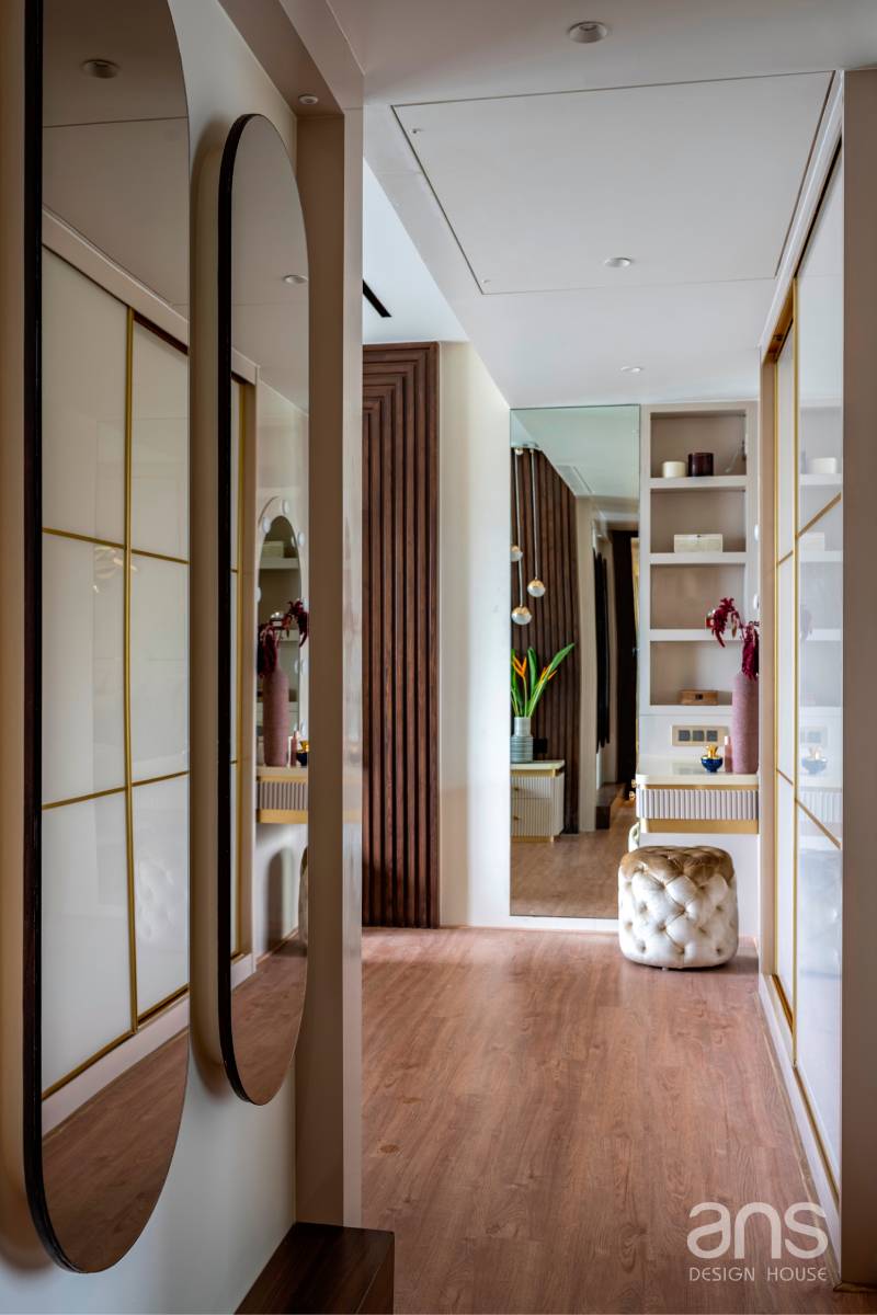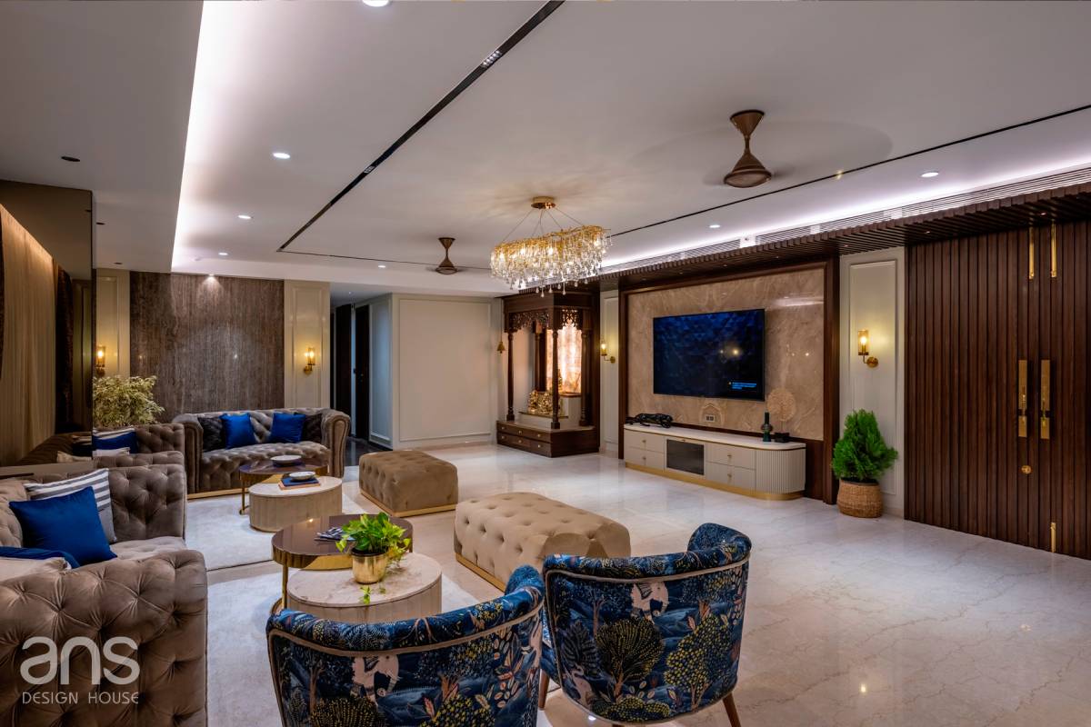 Inspired by the client’s deep reverence for design and desire for a home that mirrors their lifestyle, this 2400 sq.ft. 5bhk Lavish twin flat at Florence, Wadhwa Courtyard, Thane, was thoughtfully crafted in 2023. Rooted in years of experience and a keen observation of user behavior, materials, and maintenance needs, the interior design strikes a balance between functionality and refined aesthetics. Bold color choices reflect the client’s personality, while classic mouldings and rich veneers lend the home a timeless elegance. Each room is uniquely personalized, echoing a cohesive yet individual charm that stays true to contemporary design sensibilities.